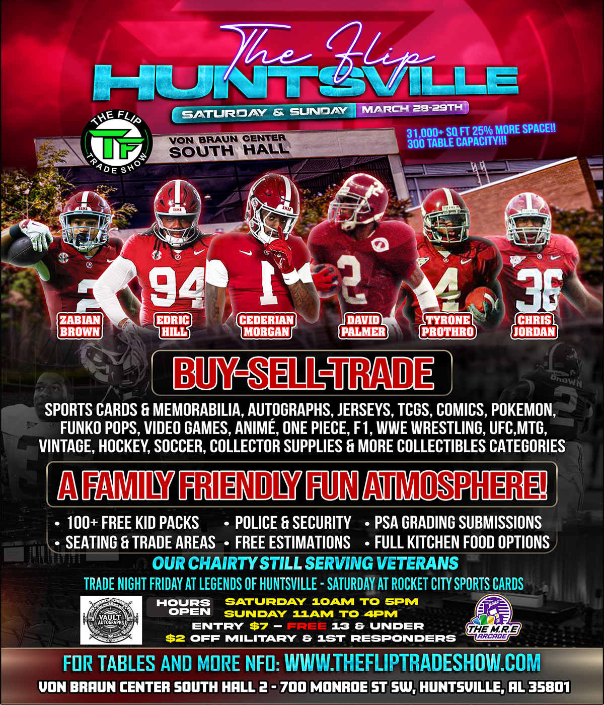 "THE FLIP" is a trade show and marketplace for collectors of Sports Cards & Memorabilia, Autographs, Jerseys, Trading Card Games (TCGS), Pokémon, MtG, Lorcana, Comics, Funko Pops, Currency & Coins, Video Games, Anime, NASCAR, UFC, F1, Wrestling, Hockey, Soccer and many more collectible categories! The selection of items will vary in each category.